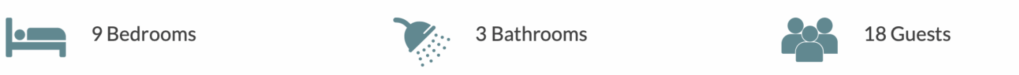 The villa has 9 bedrooms, with options for double, twin, triple and single occupancy according to family needs. Most rooms are beamed and have stunning views over the bay. Each room has its own washbasin. There are 3 bathrooms, one on each floor with a sink, wc and shower (no baths).